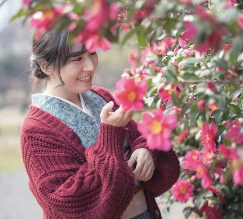 1月のきものフォトに「着物とお花」・「中野不動尊」が